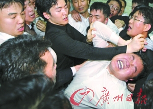 在野黨議員與執(zhí)政黨議員互毆。