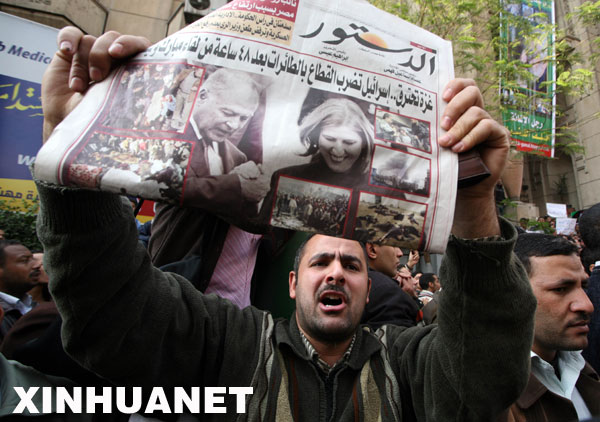 12月28日,埃及民眾在開羅舉行集會,抗議以色列空襲加沙地帶,聲援加沙民眾。以色列空軍27日開始對加沙地帶多處地點(diǎn)進(jìn)行空襲,目前已造成至少271人死亡、900多人受傷,其中120人傷勢嚴(yán)重。新華社發(fā)(納賽爾攝)