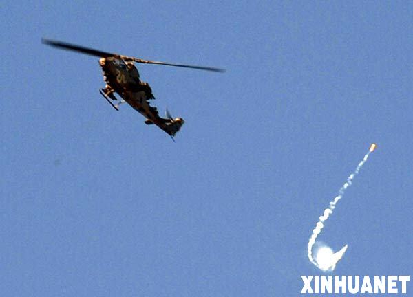 12月28日,一架以色列直升機(jī)在加沙地帶上空發(fā)射火箭。 新華社記者 殷博古攝