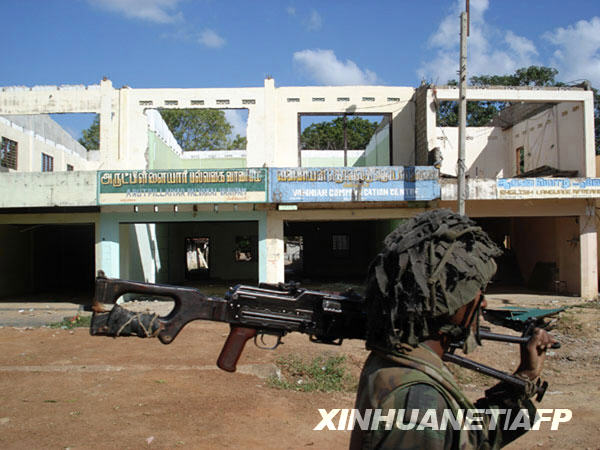這張斯里蘭卡國(guó)防部1月3日發(fā)布的照片顯示,一名斯政府軍士兵進(jìn)入首都科倫坡以北約330公里的反政府武裝泰米爾伊拉姆猛虎解放組織(猛虎組織)的大本營(yíng)基利諾奇。新華社/法新