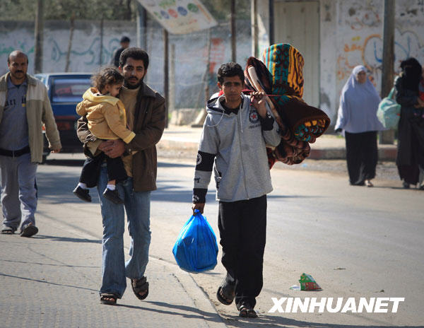 1月12日,巴勒斯坦人為躲避戰(zhàn)火帶著孩子和物品尋覓安全的地方。以軍持續(xù)的軍事行動使加沙地帶的巴勒斯坦人難覓安全的棲身之地。新華社發(fā)(納賽爾攝)