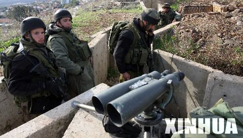 1月14日,幾名以色列士兵在以色列和黎巴嫩邊境地區(qū)警戒。黎巴嫩媒體當(dāng)日?qǐng)?bào)道,黎境內(nèi)不明身份武裝人員當(dāng)天上午從黎南部向以色列境內(nèi)發(fā)射了兩枚“喀秋莎”火箭彈,以軍隨后向黎巴嫩境內(nèi)發(fā)射了4枚炮彈進(jìn)行還擊。 新華社發(fā)