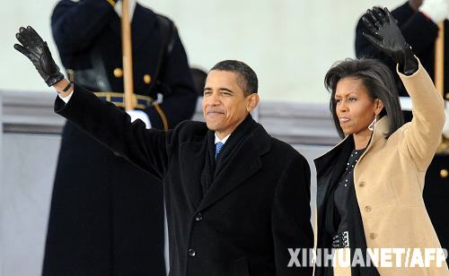 1月18日,在美國華盛頓,當(dāng)選總統(tǒng)奧巴馬同妻子米歇爾抵達(dá)“我們是一家”音樂會現(xiàn)場。當(dāng)天,美國當(dāng)選總統(tǒng)奧巴馬抵達(dá)華盛頓后,來到林肯紀(jì)念堂出席音樂會,為一連4日的就職慶典拉開序幕。新華社/法新