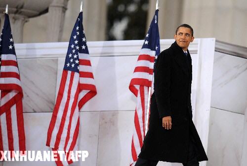 數(shù)十萬美國民眾18日下午齊聚首都華盛頓林肯紀念堂前的國家廣場,參加慶祝當選總統(tǒng)貝拉克·奧巴馬就職的大型音樂會,規(guī)模空前。