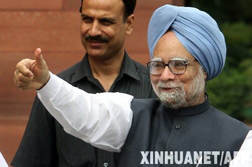 圖為2008年7月21日,印度總理辛格抵達(dá)新德里的特別會(huì)議會(huì)場。新華社/法新