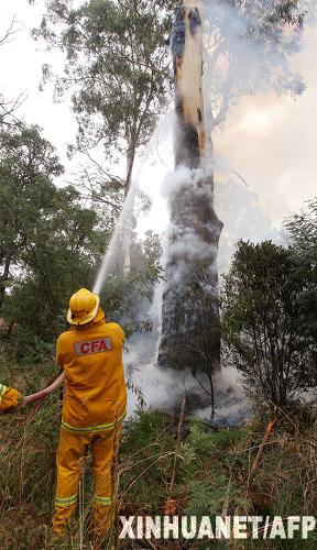 澳大利亞山林大火肆虐 2月8日,在澳大利亞維多利亞州首府墨爾本北部,消防員為仍在燃燒的大樹(shù)滅火。澳東南部正遭遇25年來(lái)最嚴(yán)重的山林大火。新華社/法新