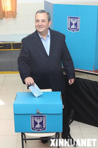 2月10日,以色列國防部長、工黨主席巴拉克在特拉維夫的一個投票站投票。新華社發(fā)