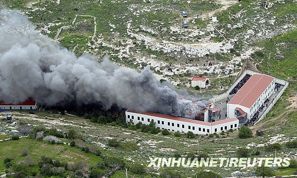 據(jù)當?shù)鼐椒Q,當天,一些被拘留在此的非法移民試圖逃跑失敗后,便縱火焚燒該收容中心,造成多人受傷。新華社/路透