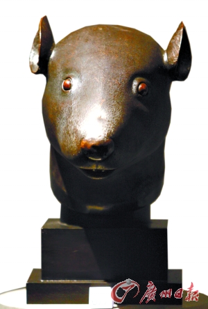 2月21日在巴黎大皇宮預展中的鼠首銅像(圖片來源:廣州日報)