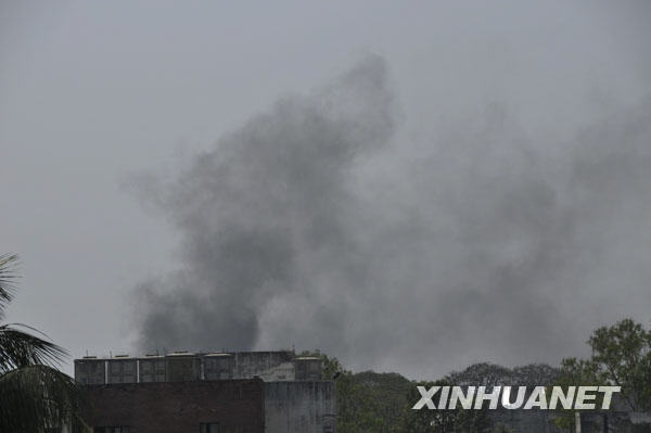 2月25日,孟加拉國準軍事組織“孟加拉國步槍隊”位于首都達卡的總部上空升起濃煙。新華社發(fā)(扎曼攝)