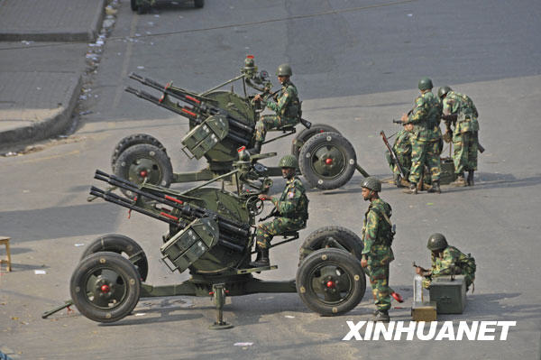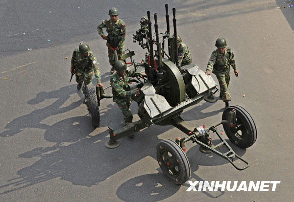 2月25日,孟加拉國軍人在首都達卡部署防空武器。新華社發(fā)(扎曼攝)