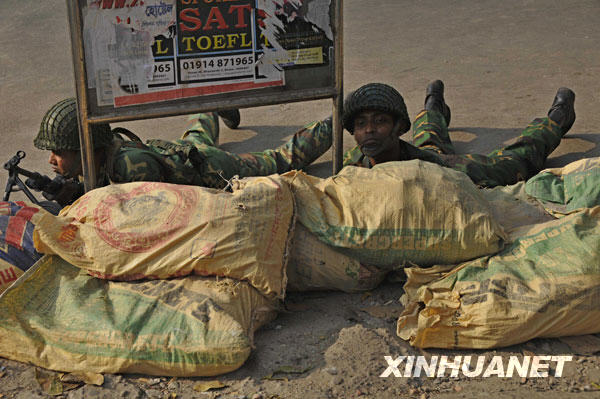 2月25日,孟加拉國軍人在首都達卡警戒。新華社發(fā)(扎曼攝)