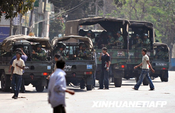 2月25日,在孟加拉國首都達卡,士兵趕赴“孟加拉國步槍隊”總部。新華社/路透