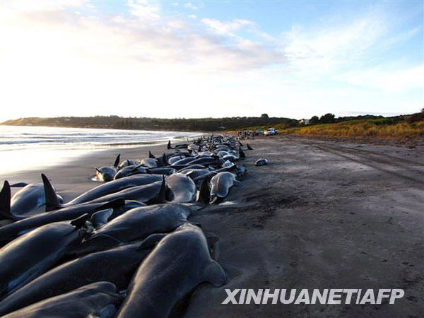 194頭巨頭鯨和7只海豚從3月1日晚開始在澳大利亞大陸和塔斯馬尼亞島之間的金島沙灘上擱淺,目前約140頭鯨魚已經(jīng)死亡。澳大利亞有關(guān)方面正在想方設(shè)法救助仍然活著的約50頭鯨魚。新華社/法新