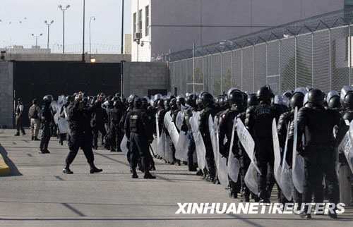 墨西哥一名政府官員說(shuō),華雷斯市一座監(jiān)獄內(nèi)的囚犯當(dāng)日發(fā)生暴動(dòng),至少20名囚犯在暴動(dòng)中死亡,另有多人受傷。新華社/路透