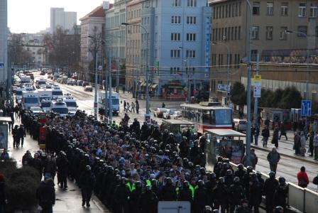 大約400名觀看足球聯(lián)賽巴尼克隊與布拉格斯拉維亞隊比賽的巴尼克隊球迷當(dāng)天傍晚乘坐火車從386公里以外的俄斯特拉發(fā)市到達(dá)首都布拉格后,早已恭候在火車站外的大隊防暴警察押送他們步行3公里直接去斯拉維亞體育場。比賽一結(jié)束又立即重新把他們押送回火車上,讓他們馬上回家,禁止他們?nèi)ナ锥际兄行聂[事。當(dāng)晚比賽巴尼克隊以0:1負(fù)于斯拉維亞隊,其間沒有發(fā)生大規(guī)模球迷騷亂,巴尼克隊球迷深夜2時回到家鄉(xiāng)。