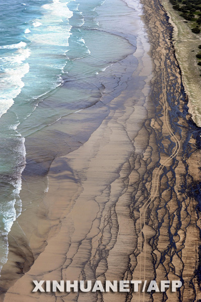 3月12日,在澳大利亞昆士蘭州的海邊,泄漏的燃油將海灘污染。新華社/法新