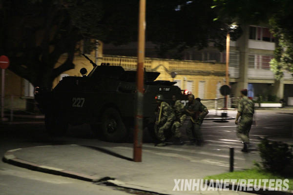 3月16日,馬達(dá)加斯加武裝部隊(duì)接近位于塔那那利佛市的一處總統(tǒng)府。當(dāng)晚,馬達(dá)加斯加武裝部隊(duì)占領(lǐng)了位于塔那那利佛市中心的總統(tǒng)府,接管過(guò)程中發(fā)生沖突,總統(tǒng)府附近的中央銀行大樓遭到炮擊。 新華社/路透