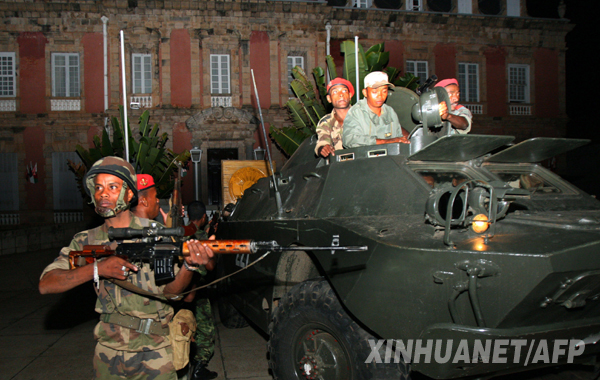 3月16日,馬達(dá)加斯加武裝部隊(duì)占領(lǐng)位于塔那那利佛市的一處總統(tǒng)府。當(dāng)晚,馬達(dá)加斯加武裝部隊(duì)占領(lǐng)了位于塔那那利佛市中心的總統(tǒng)府,接管過(guò)程中發(fā)生沖突,總統(tǒng)府附近的中央銀行大樓遭到炮擊。 新華社/法新