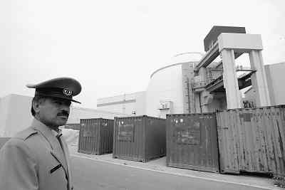伊朗不久前對由俄羅斯承建的布什爾核電站進行測試運行,以對這座仍未最后完工的核電站進行初步的性能測試。圖為一名保安人員在布什爾核電站的反應堆前值勤!⌒氯A社記者 梁有昶攝