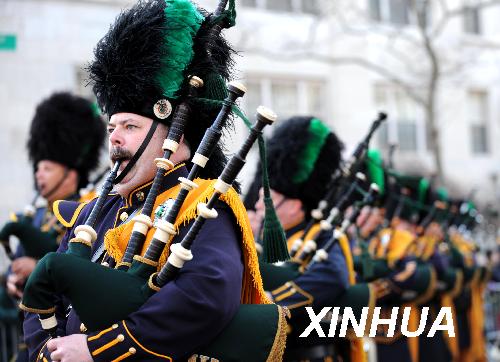 3月17日,在美國(guó)紐約曼哈頓,愛爾蘭樂手在圣帕特里克節(jié)游行中表演。當(dāng)日,紐約舉行盛大游行,慶祝圣帕特里克節(jié)。圣帕特里克節(jié)是愛爾蘭人紀(jì)念愛爾蘭守護(hù)神圣帕特里克的節(jié)日,至今已有1500多年歷史,這一節(jié)慶傳統(tǒng)被愛爾蘭移民帶入美國(guó)。新華社記者 申宏 攝