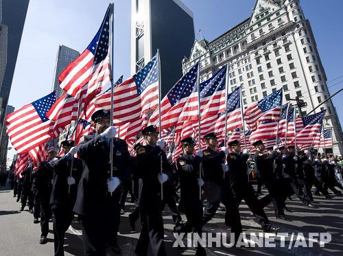 3月17日,在美國(guó)紐約,紐約消防員參加圣帕特里克節(jié)游行。當(dāng)日,紐約舉行盛大游行活動(dòng)慶祝圣帕特里克節(jié)。圣帕特里克節(jié)是愛爾蘭人紀(jì)念愛爾蘭守護(hù)神圣帕特里克的節(jié)日,至今已有1500多年歷史,這一節(jié)慶傳統(tǒng)被愛爾蘭移民帶入美國(guó)。新華社/法新
