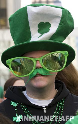 3月17日,在美國(guó)紐約,一名男子參加圣帕特里克節(jié)游行。當(dāng)日,紐約舉行盛大游行活動(dòng)慶祝圣帕特里克節(jié)。圣帕特里克節(jié)是愛爾蘭人紀(jì)念愛爾蘭守護(hù)神圣帕特里克的節(jié)日,至今已有1500多年歷史,這一節(jié)慶傳統(tǒng)被愛爾蘭移民帶入美國(guó)。新華社/法新