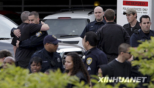 美國(guó)加利福尼亞州奧克蘭市21日發(fā)生槍擊事件,一名槍手與警方展開(kāi)兩次槍?xiě)?zhàn),3名警察中槍身亡,1名警察重傷。這名槍手也遭擊斃。22日,重傷警官、41歲的約翰·黑格在醫(yī)院不治身亡。新華社/美聯(lián)