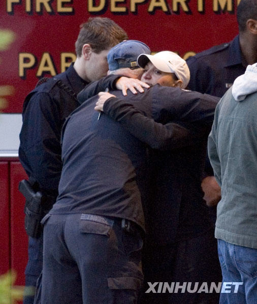 3月21日,在美國(guó)加利福尼亞州的奧克蘭市,兩名警察在醫(yī)院門(mén)口等候受傷同事的消息時(shí)安慰對(duì)方。