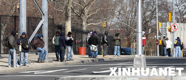 3月25日,幾名失業(yè)者在美國紐約皇后區(qū)街頭等待雇主的雇傭。新華社記者劉欣攝