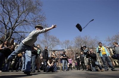 中新網(wǎng)4月2日電 失業(yè)讓人心情郁悶,紐約日前舉辦了一場“失業(yè)奧運會”(Unemployment Olympics),數(shù)十名的失業(yè)人士在“你被炒魷魚了”項目競跑,將滿腔憤怒化為力道,在“丟辦公室電話”競賽中拋出好成績。