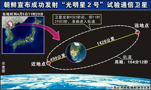圖表:朝鮮宣布成功發(fā)射“光明星2號(hào)”試驗(yàn)通信衛(wèi)星 新華社發(fā)
