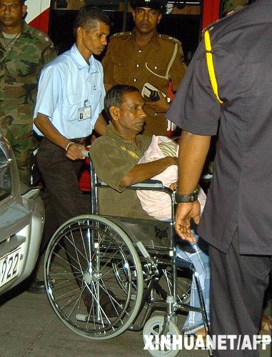 據(jù)法新社4月22日援引斯里蘭卡軍方提供的消息報道,斯里蘭卡反政府的泰米爾伊拉姆猛虎解放組織(猛虎組織)發(fā)言人達(dá)亞·馬斯特當(dāng)日向政府軍投降。這是達(dá)亞·馬斯特坐在輪椅上前往科倫坡一家醫(yī)院接受心臟病治療的資料照片(2006年7月13日攝)。新華社/法新