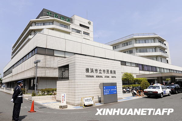5月1日,一名安保人員在日本橫濱市立市民醫(yī)院外值勤。新華社/法新