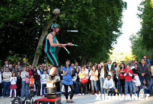 5月1日,在西班牙首都馬德里,民眾在市中心公園廣場觀看街頭藝人表演。截至5月1日,西班牙已確認(rèn)13例甲型H1N1流感病例,待排查疑似病例為116例,但這并未影響該國民眾正常生活,也未見恐慌情緒出現(xiàn)。人們在戶外享受明媚春光,地鐵里、大街上也基本沒人戴口罩出行。 新華社記者陳海通攝