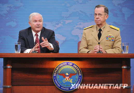 5月11日,美國(guó)國(guó)防部長(zhǎng)蓋茨(左)和美國(guó)參謀長(zhǎng)聯(lián)席會(huì)議主席邁克爾·馬倫在首都華盛頓五角大樓出席新聞發(fā)布會(huì)。當(dāng)日,蓋茨在新聞發(fā)布會(huì)上宣布,他已要求駐阿富汗美軍指揮官麥基爾南上將辭職,并推薦前美軍特種作戰(zhàn)司令部司令麥克里斯特爾中將接任。新華社/法新