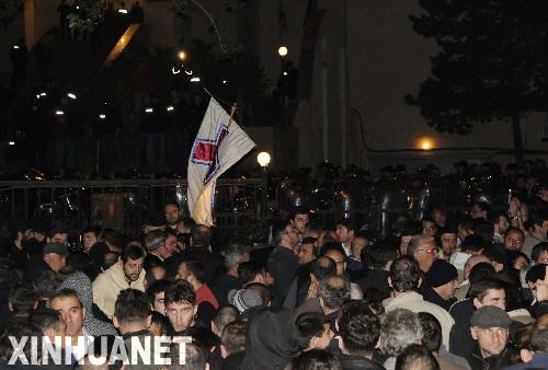 5月6日,近千名格魯吉亞反對(duì)派人士封鎖了首都第比利斯市警察局及附近進(jìn)入市中心的公路入口,要求釋放被警察逮捕的反對(duì)派支持者。格反對(duì)派從今年4月初開(kāi)始,在首都第比利斯街頭舉行無(wú)限期集會(huì),要求總統(tǒng)薩卡什維利辭職。 新華社記者郭群攝