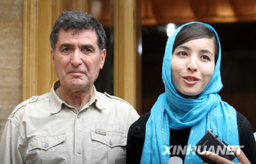 5月12日,在伊朗首都德黑蘭,在伊朗受審的美國(guó)女記者羅克薩娜·薩貝里(右)在其住所外與父親里薩·薩貝里共同接受媒體采訪,這是她獲釋后首次公開(kāi)露面。新華社發(fā)(哈拉比薩斯攝)