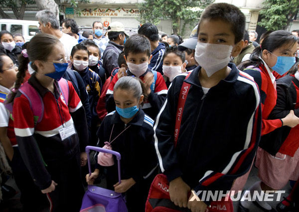 5月11日,在墨西哥首都墨西哥城,一些戴著口罩的小學(xué)生準(zhǔn)備進入學(xué)校上課。當(dāng)日,因受到甲型H1N1流感疫情影響停課的墨西哥中小學(xué)和學(xué)齡前教育機構(gòu)開始復(fù)課。新華社/路透
