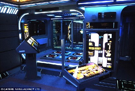 房間中到處充斥著光怪陸離的燈光和顯示器;每天早晨,聲控電腦系統(tǒng)會點(diǎn)亮所有的日光燈管;天花板由鏡子拼接而成;被有機(jī)玻璃和木材封得嚴(yán)嚴(yán)實(shí)實(shí)的窗戶看起來好像外面真的是外太空;就連門鈴也進(jìn)行了改造,成為船長皮卡德那令人熟悉的聲音。