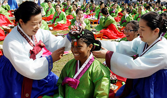 圖為韓國(guó)少女舉行成人儀式。