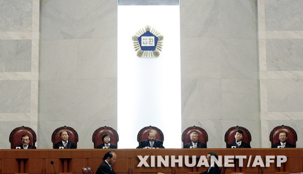 5月21日,在韓國(guó)首都首爾,韓國(guó)大法院長(zhǎng)李容勛(中)對(duì)安樂(lè)死案作出裁決。