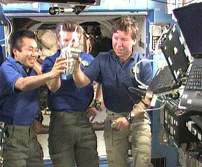 國(guó)際空間站宇航員干杯飲用尿液循環(huán)水。
