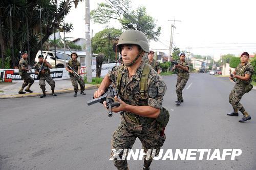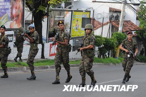 6月28日,在洪都拉斯首都特古西加爾巴,士兵包圍總統(tǒng)塞拉亞的住所。洪都拉斯總統(tǒng)私人秘書雷納當(dāng)天說,塞拉亞總統(tǒng)當(dāng)天被軍方扣押表明洪都拉斯已經(jīng)發(fā)生軍事政變。新華社/法新