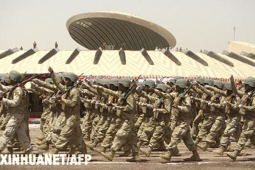 6月30日,在伊拉克首都巴格達(dá)市中心的“綠區(qū)”舉行的閱兵式上,伊拉克士兵在無(wú)名士兵墓前列隊(duì)行進(jìn)。根據(jù)美伊雙方的協(xié)議,美軍戰(zhàn)斗部隊(duì)在6月30日前全部撤出伊拉克城鎮(zhèn),伊拉克安全部隊(duì)接管安全防務(wù)。 新華社/法新