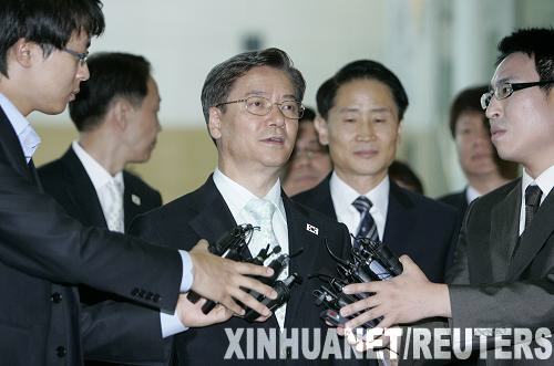 7月2日,即將前往朝鮮參加工作會(huì)談的韓國(guó)統(tǒng)一部南北會(huì)談本部常務(wù)代表金英卓(中)在韓國(guó)坡州接受記者采訪。當(dāng)日,韓國(guó)政府代表團(tuán)前往朝鮮參加朝韓工作會(huì)議。新華社/路透