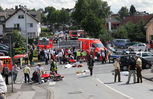 據(jù)德國媒體報道,當(dāng)局出動5架救護(hù)直升機(jī)和7輛救護(hù)車搶救運(yùn)送傷員。