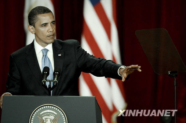 6月4日,美國總統(tǒng)奧巴馬在埃及開羅大學發(fā)表對伊斯蘭世界的重要講話。新華社記者 張寧 攝