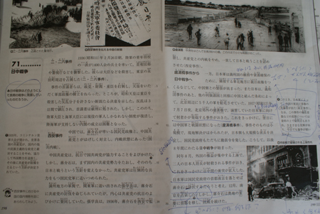 除了用詞之外,對(duì)輔助照片的運(yùn)用也值得注意。介紹南京大屠殺史,通常使用日軍進(jìn)入南京的照片。而沒有一本書中采用了南京市民被日軍殘害的照片。而日本學(xué)生們?cè)谶@樣的教科書中,根本找不到日軍殘暴行為的具體痕跡。