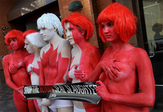 裸體抗議獵殺海豹。